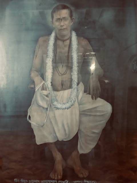 Prabhupada Srila Prangopal Goswami is the 11th direct bloodline descendant of Nityananda Prabhu. His life is full of miracles and supernatural events. He was an influential Ācārya and a prominent guardian of devotion at the turn of the last century. He is famous for his special style of harikatha (patha–kirtan), his settling the dispute over whether Harinam should be chanted silently or loudly, his reviving lila–kirtan, his organising the first cleaning of Radha Kund in modern times, his being an exemplary householder as well as a scholar and a charismatic preacher and, not least, for his books. A tiny drop of his glories, major contributions and miraculous pastimes are mentioned below.