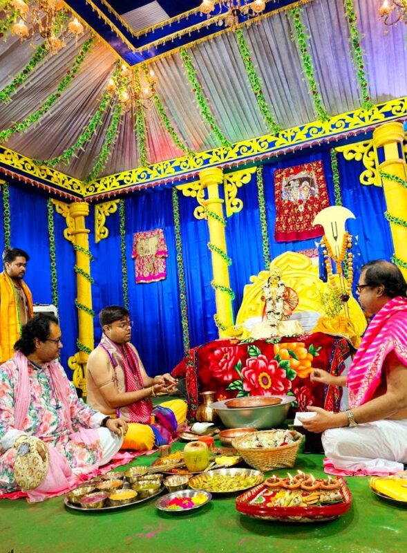 Ordinarily, our worship of Kṛṣṇa is not complete without Śrīmatī Rādhārāṇī—we cannot worship Him alone. But in Gaura-līlā, both are present within this single form. As long as we remain absorbed in the supremely beautiful form of Gaurāṅga Mahāprabhu, keeping His lotus feet within our hearts, our bhajana is complete.
